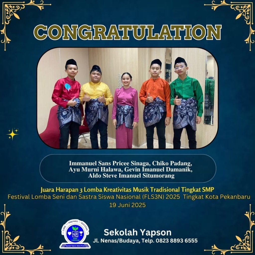 Kami senantiasa menghargai setiap dedikasi, kerja keras, dan bakat yang telah ditunjukkan oleh siswa-siswa kami dalam berbagai bidang.